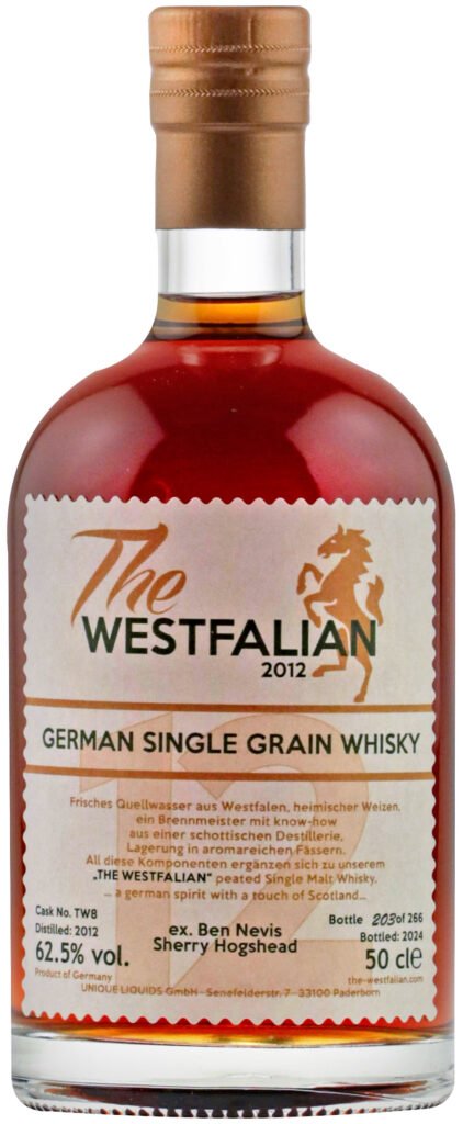 Un perfil complejo, que comienza con una nariz de queso ahumado sobre galletas saladas, cornflakes con frutos secos y un frescor floral. En boca presenta notas de galletas digestive y destilado joven con manzana, dando paso a tonos de cebada triturada y cereales. El final es largo, combinando elementos frutales y salados, con un calor bien controlado.